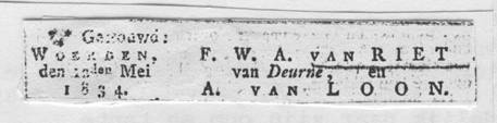 huwelijk van Frederikk Willem Adriaan van Riet en bij het overlijden van zijn
