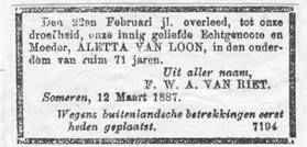 1887. Frederik overleed te Someren op 5 maart 1889. Bij de overlijdensaangifte