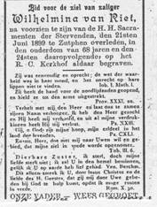 08.013 Wilhelmina (Willemijn) van Riet, geboren en R.K. gedoopt te Warnsveld op 2 maart 1831. Zonder beroep en