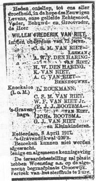juli 1841. Willem overleed te Rotterdam op 8 april 1917. Cornelia overleed ook
