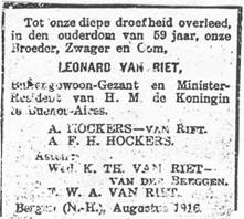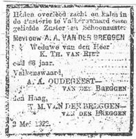 het overlijden van Alida Aartje van Riet-van der Breggen en bij het overlijden