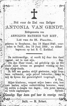 geboren te Delft op 22 mei 1863. Zij was vroedvrouw van beroep. Hij stierf