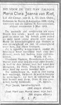 10.035 Maria Clara Johanna van Riet, geboren te Beers op 8 augustus 1899