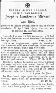 10.034 Joseph Lambertus Michaël van Riet, geboren te Beers op 29 september 1896 en aldaar overleden op 25
