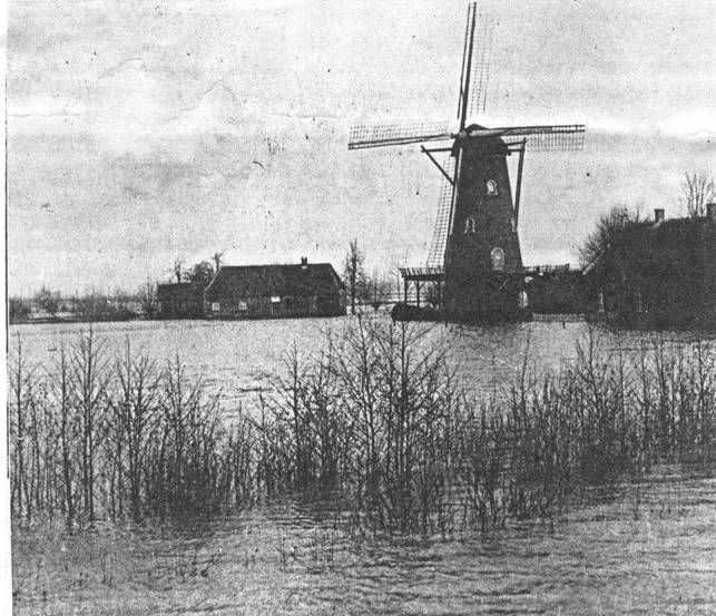 rechts het molenhuis waar toen Paul en Cato van Riet woonden. In het molenhuis