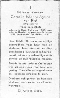 Limburg van de vleeswarenfabriek 'Anton Hunnink'. Cornelia overleed te Heerlen op 30 oktober