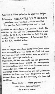 Henricus Cornelis van Riet en Johanna van Keken.