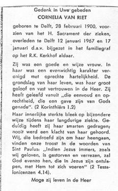 11.008 Cornelia van Riet, geboren te Hof van Delft op 28 februari 1900.