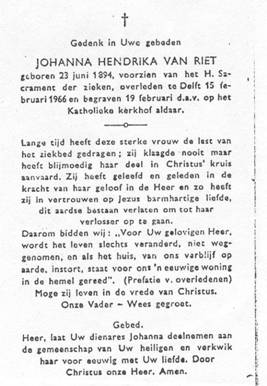11.005 Johanna Hendrika van Riet, geboren te Hof van Delft op 23 juni